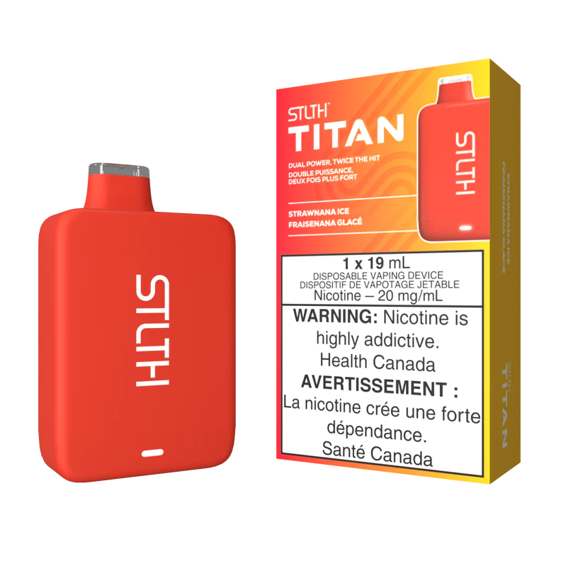 Stlth Titan 10k Disposable – Strawnana Ice Strawnana Ice by Stlth Titan 10k Disposable combines the creamy sweetness of ripe bananas with the juicy tanginess of fresh strawberries, enhanced by a cooling menthol finish. This flavor provides a smooth and satisfying vaping experience, reminiscent of a frozen fruit smoothie.